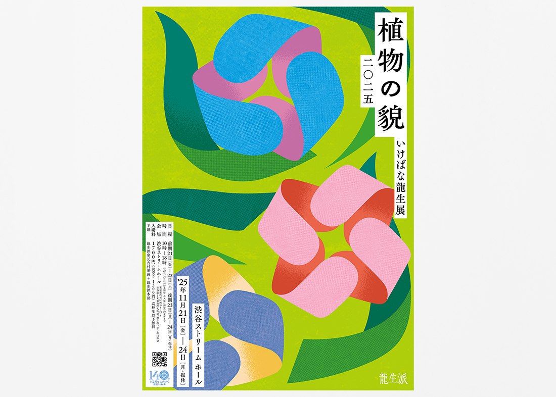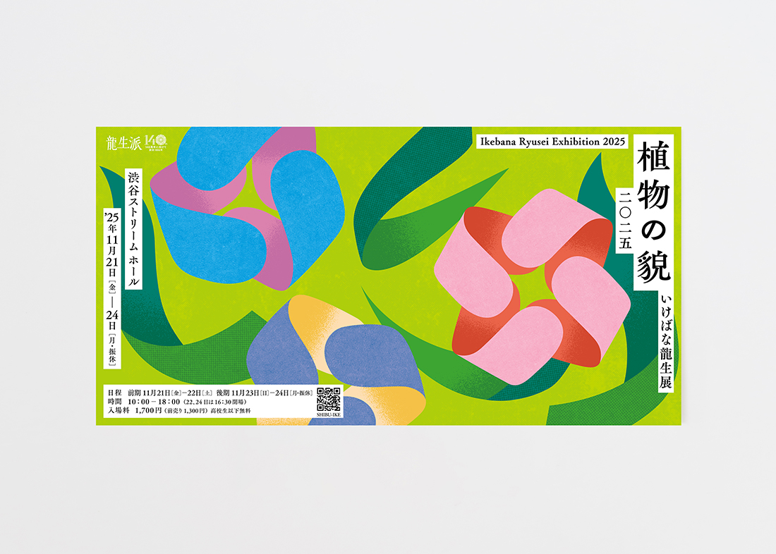 11月21日〜24日に渋谷ストリーム ホールにて開催されました「いけばな龍生展 植物の貌2025」のポスター・DM・チケット・ビジュアルボードなどのデザインを担当しました。